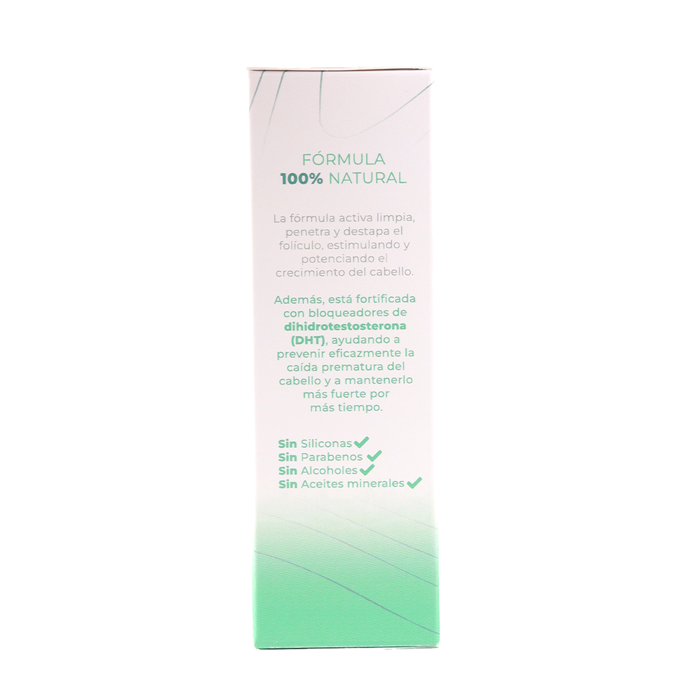 Con una fórmula 100% natural limpia, penetra y destapa el folículo, estumulando y potenciando el crecimiento del cabello. Además, nuestro sérum esta fortificado con bloqueadores de dihidrotestosterona (DHT), ayudando a prevenir eficazmente la caída prematura del cabello y a mantenerlo más fuerte por más tiempo.